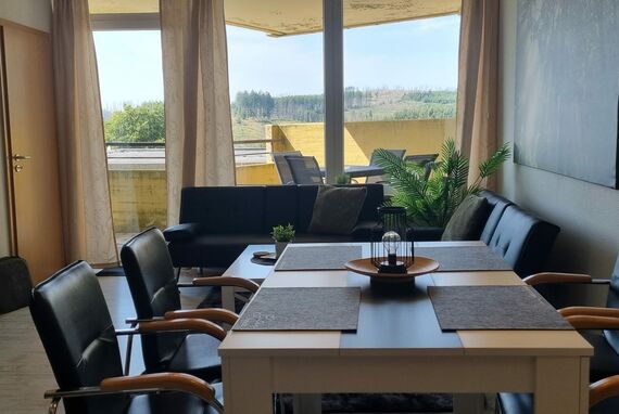 In der 1. Etage liegt diese Ferienwohnung mit 2 Schlafzimmern. Kostenlose Schwimmbad Nutzung im Haus, Sauna gegen Gebühr, Minigolf, Rodelbahn und Spielplatz direkt am Haus.