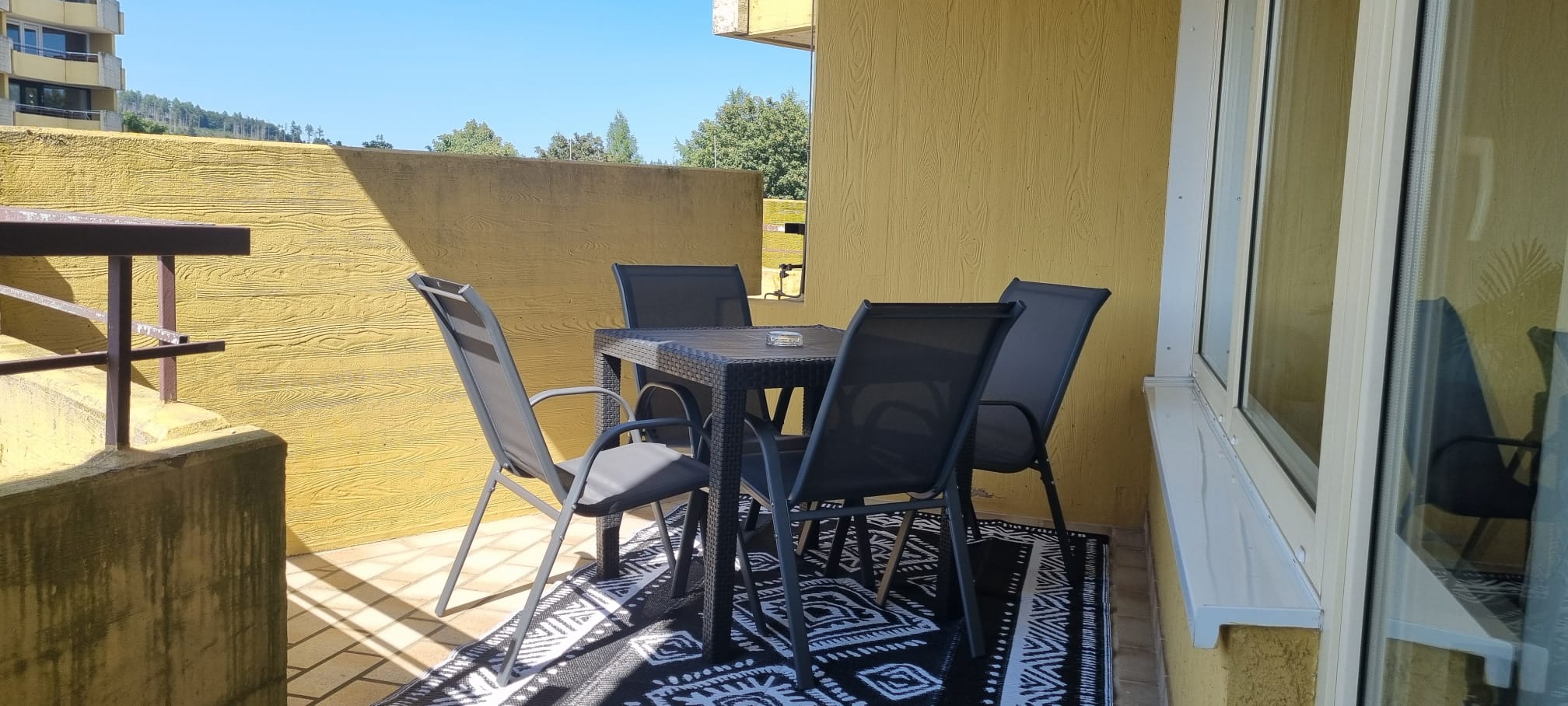 Das Appartement verfügt über einen geräumigen, sonnigen Balkon mit Gartenmöbeln. Ihr Hund darf auch mitkommen.