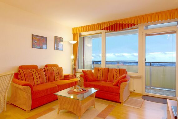 Modern eingerichtete Nichtraucher-Ferienwohnung mit einem Schlafraum mit Doppelbett (1,80 x 2,00 m) und Wohnraum mit Schlafcouch mit tollem Ausblick aus der 15. Etage.